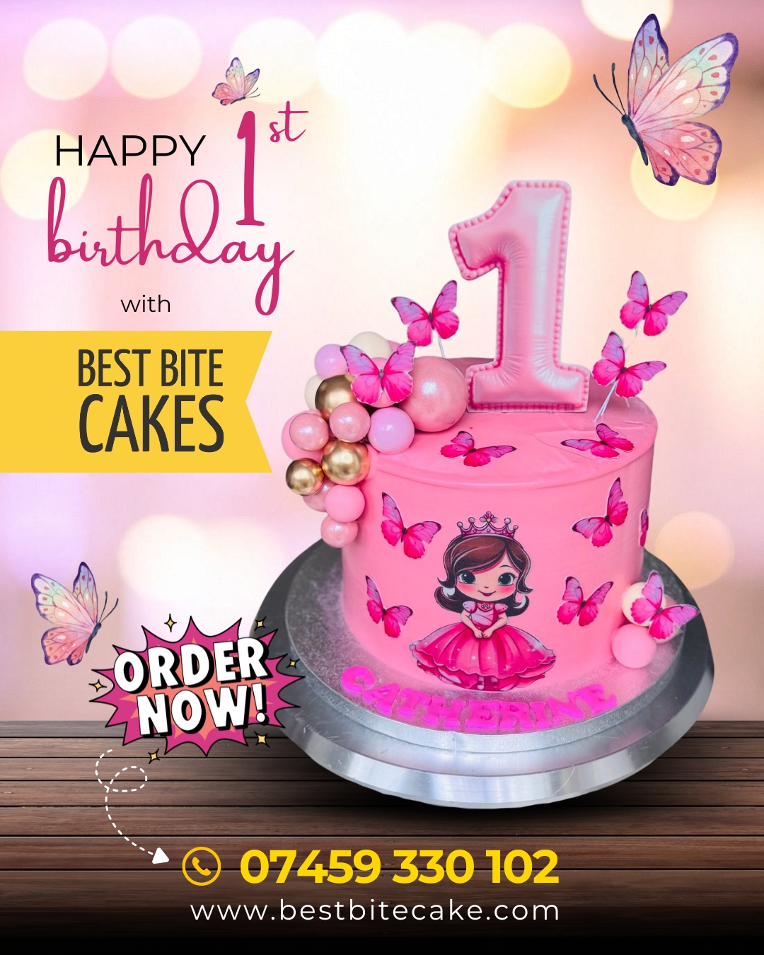 Your little princess’s first birthday deserves something magical! Our Pink Butterfly Cake is beautifully designed with soft colors, delicate butterflies, and layers of pure joy. Perfect for capturing those precious “first” memories. ![]()