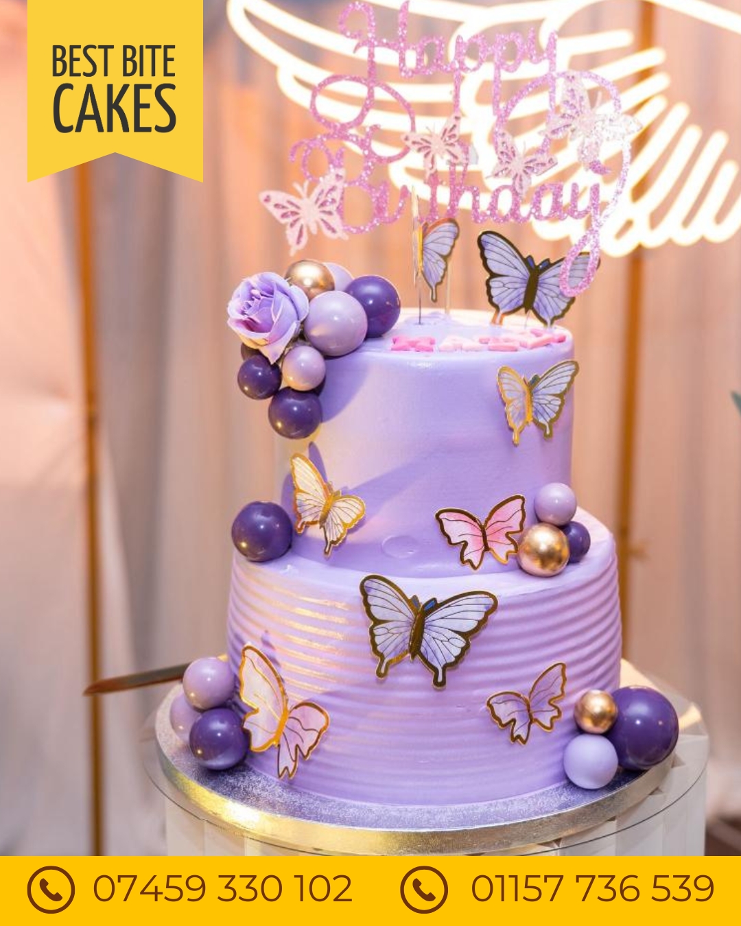Decorated with delicate edible butterflies and soft purple tones, this cake is ideal for birthdays, anniversaries, or any occasion that deserves a touch of charm and sophistication. ![]()