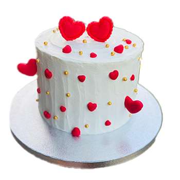 Celebrate your special day with our Red Hearts Anniversary Cake, beautifully decorated with romantic red hearts and soft creamy layers — the perfect way to say “I love you” all over again.